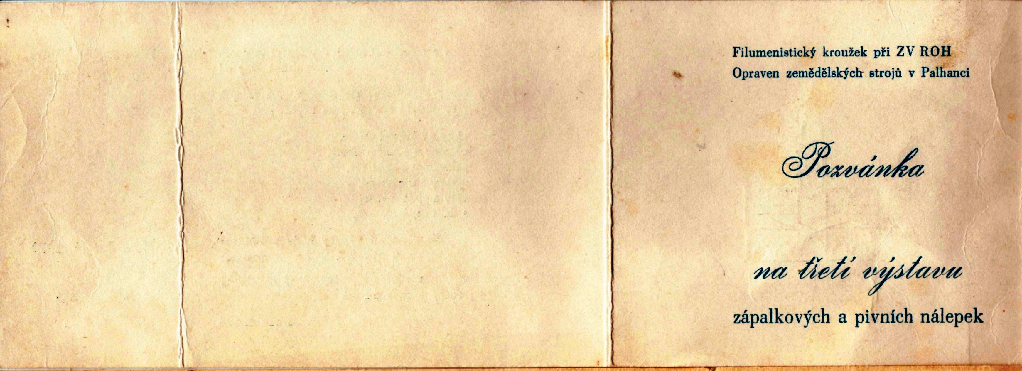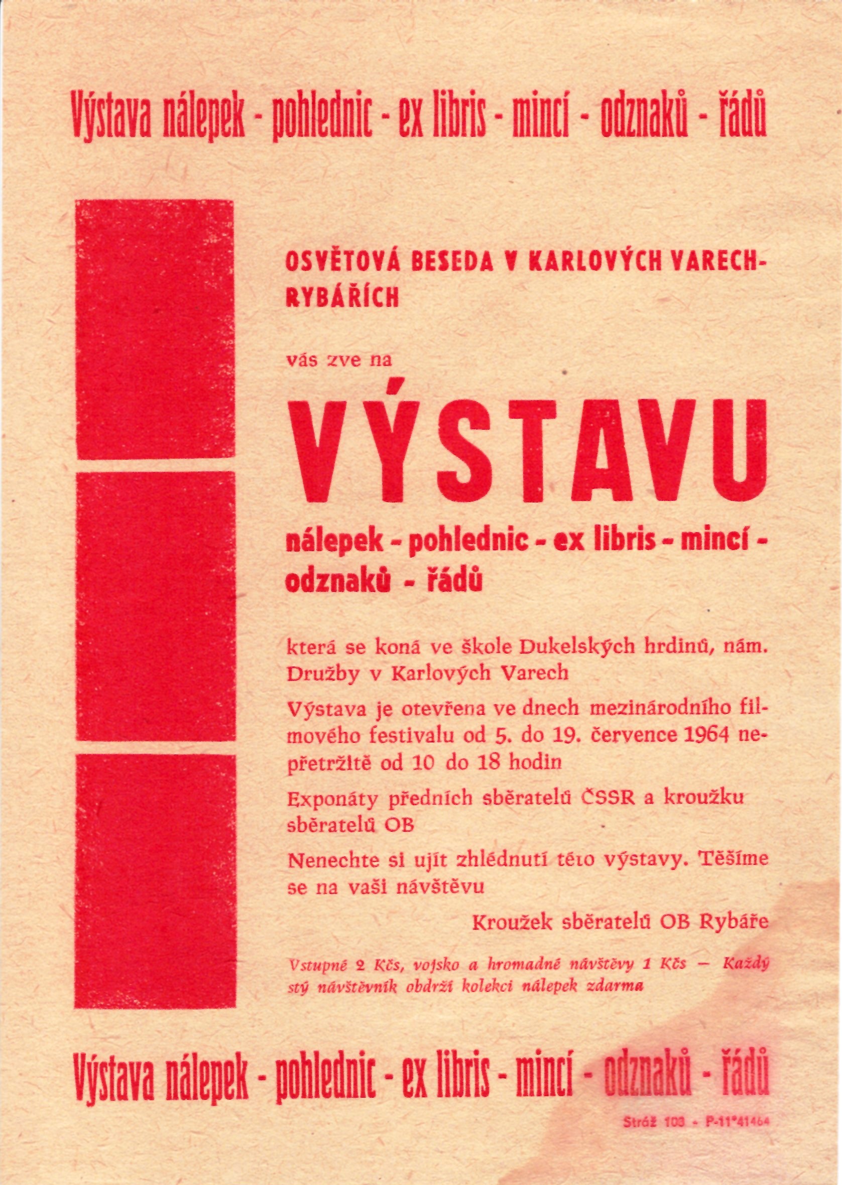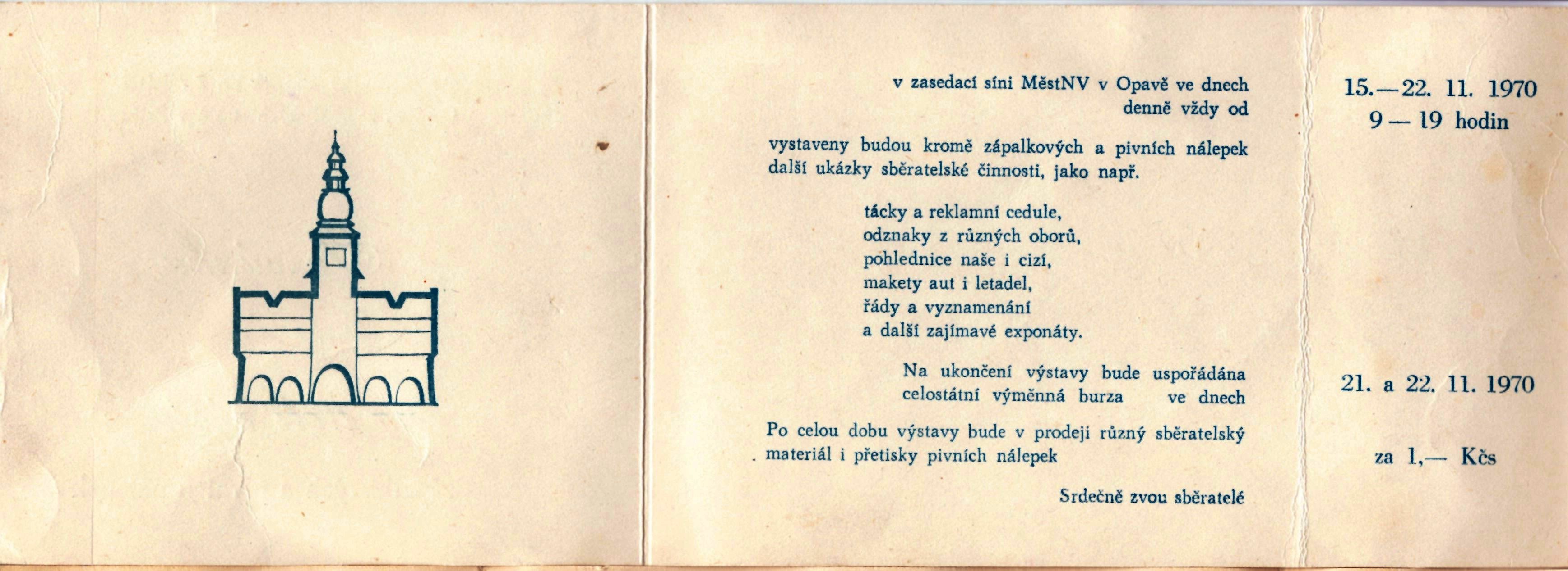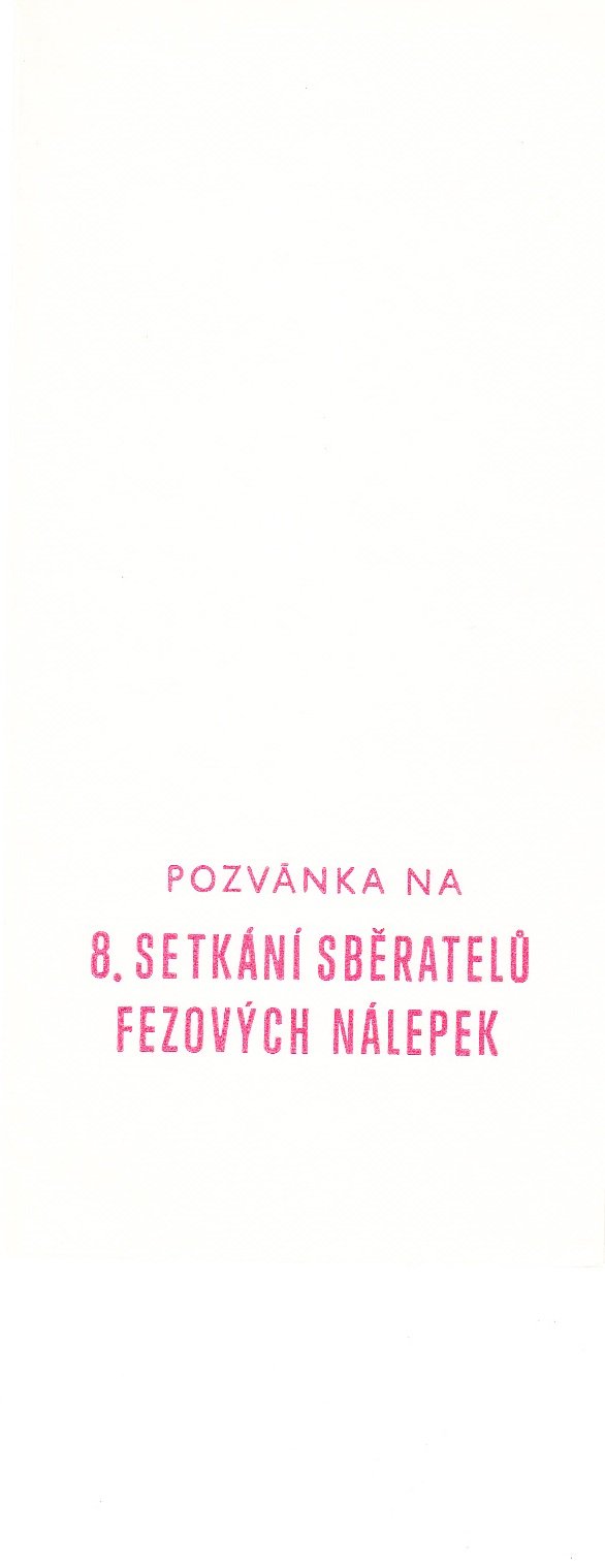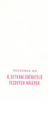 pamětní aršík ale i pozvánka, plakát, čestné uznání atd. Setkání sběratelů zase přineslo pozvánky různých sběratelských oborů k jedné akci.