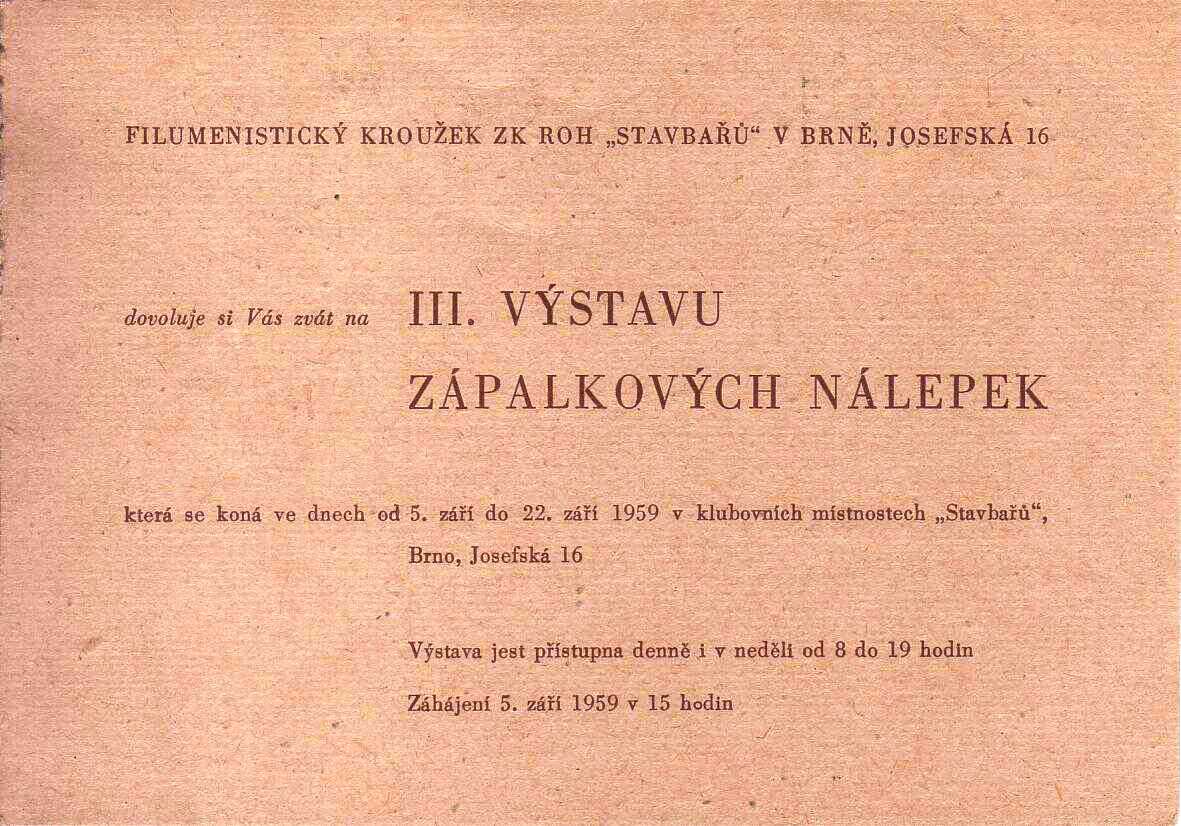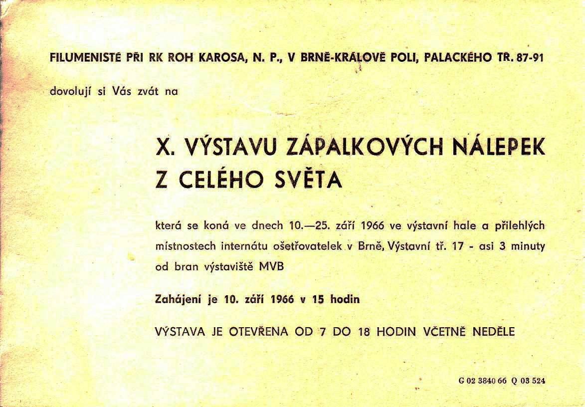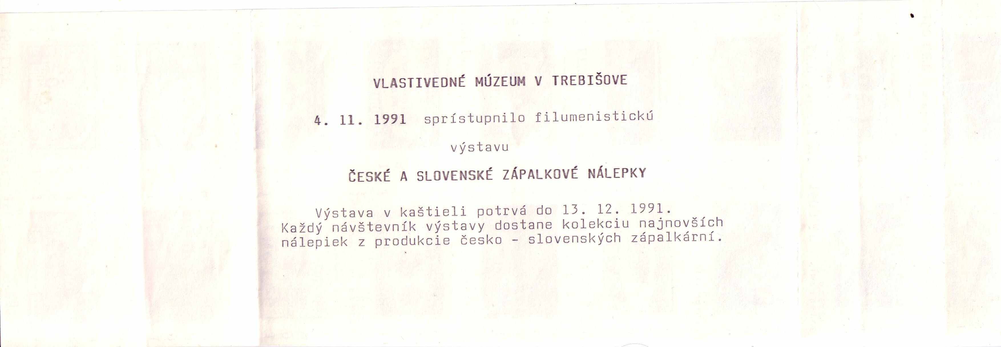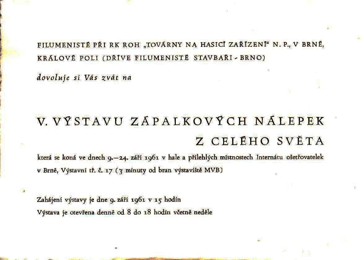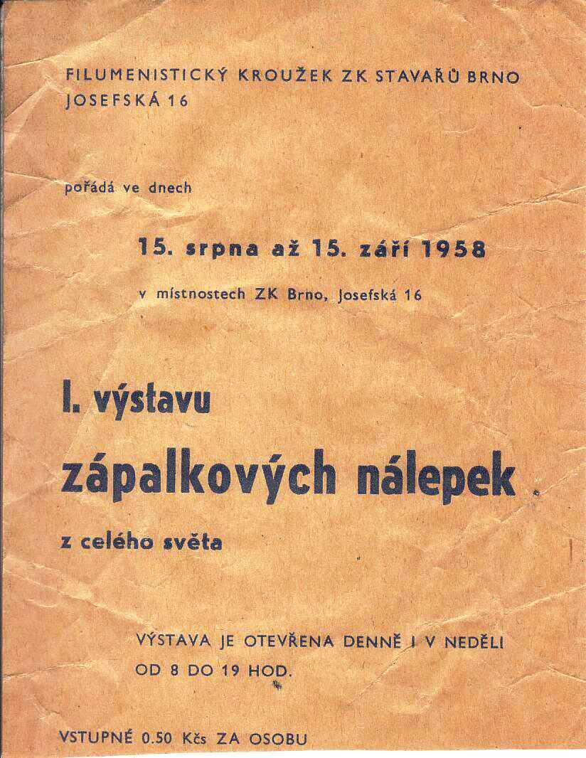 celostátní výstavy Zápalkových Nálepek (ZN) ,,SIRKA-ZÁPALKA,, v Brně (1996).