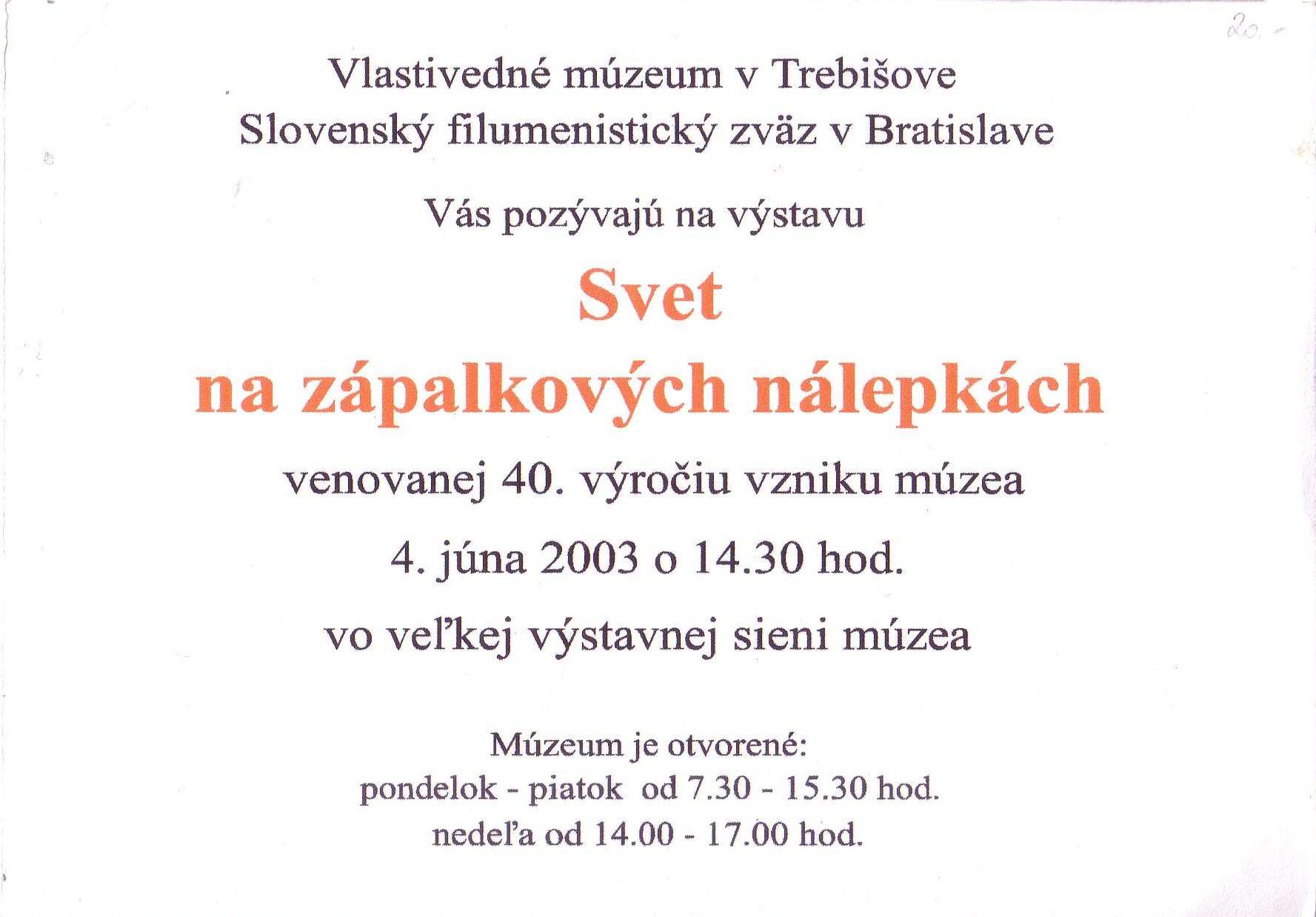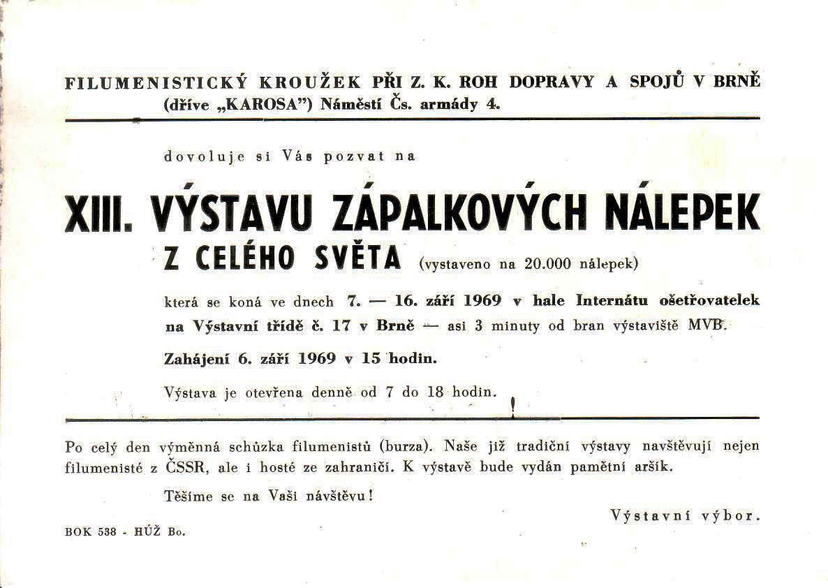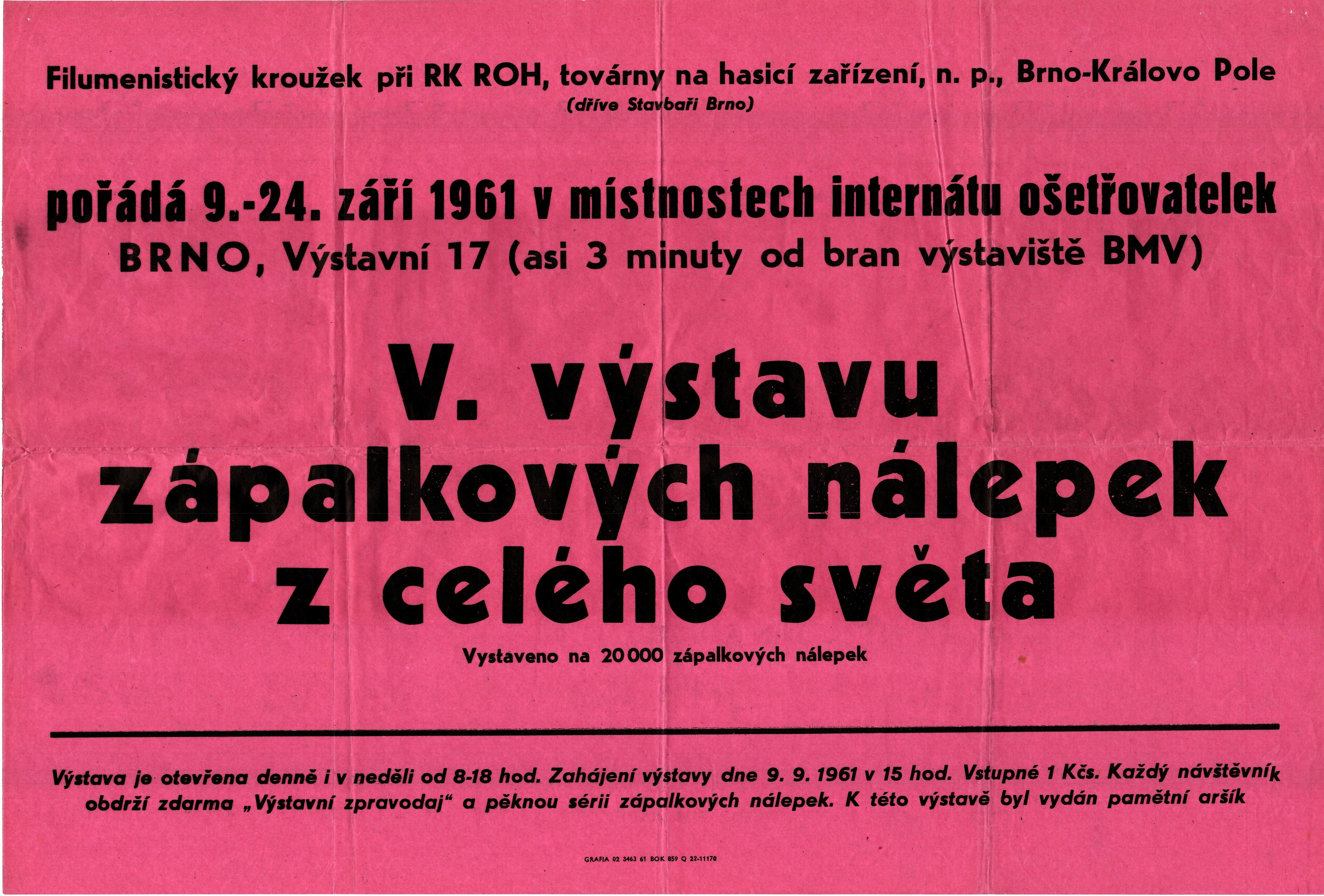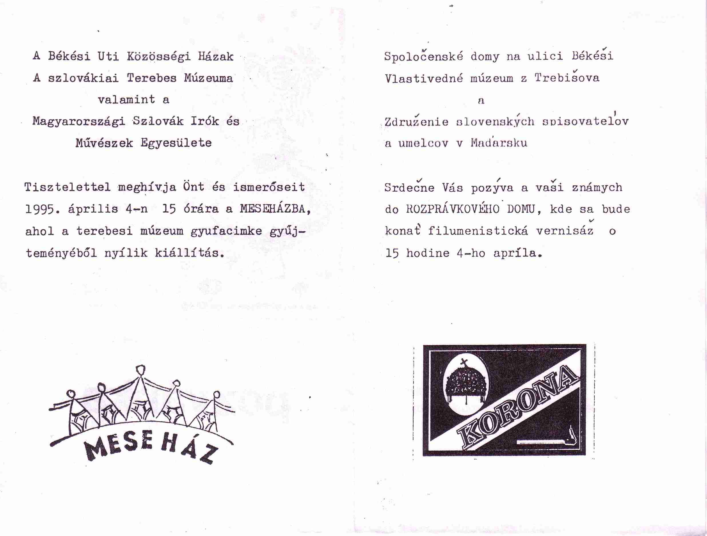 celostátní výstavy Zápalkových Nálepek (ZN) ,,SIRKA-ZÁPALKA,, v Brně (1996).