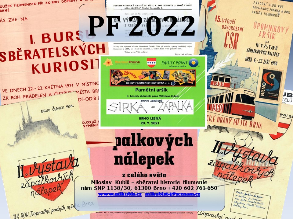 Seznámím Vás s historií SIRKAŘSTVÍ, FILUMENIE a klubů sběratelů ZN a o tom vlastně je celá má sbírka. Zajímám se i o skončené výstavy jako např. České Budějovice. Představím Vám i další sběratelské obory, které vydávají přetisky nebo pamětní listy. Jako jsou sběratele obalů od ČOKOLÁD , ŽVÝKAČEK, etiket SÝRU, FEZU, Pivních Etiket (PE) atd.